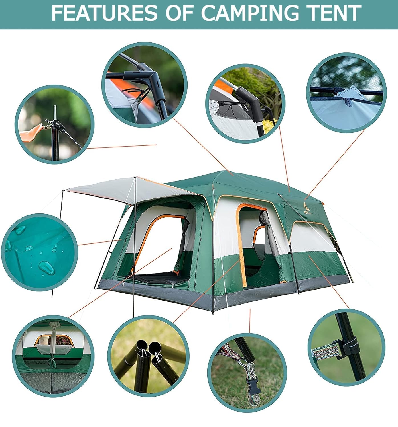1. Spacious Design: Accommodates 5-9 people with a size of 380 * 260 * 185 cm.