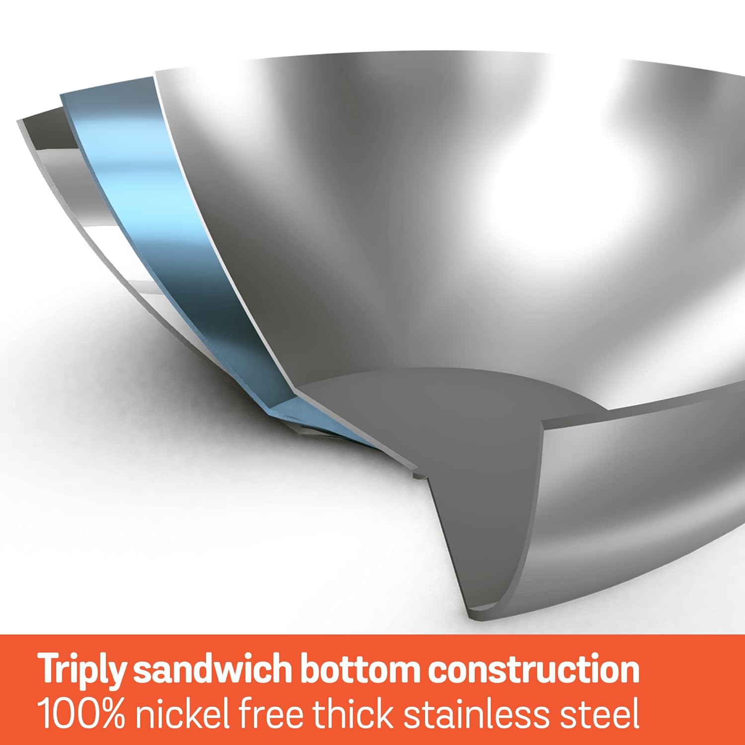 – Tri-ply construction ensures even heating