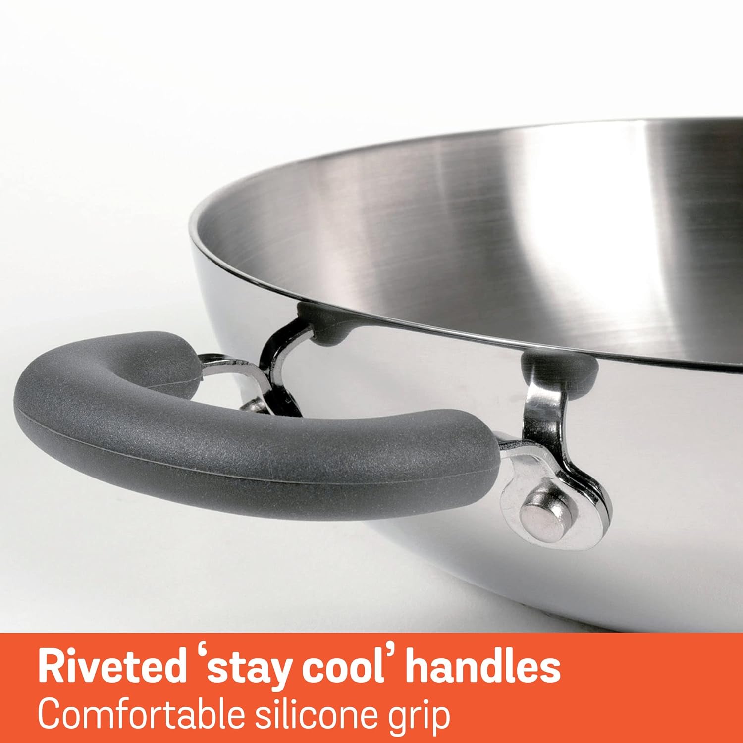 – Stay-cool, silicone-covered handles